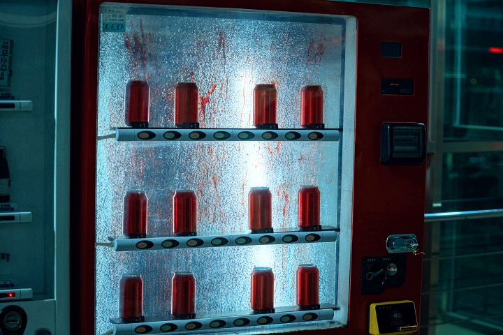 - 저조도 조명 + 붉은 톤 네온으로 불쾌하고 음산한 분위기 연출